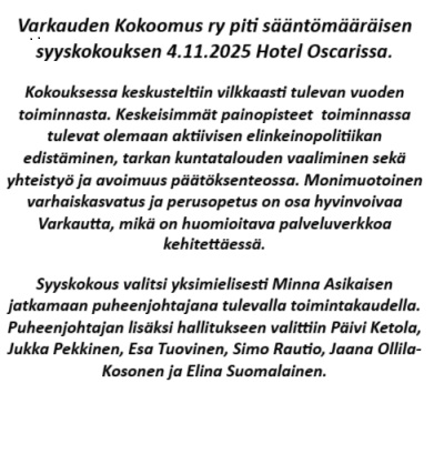 Varkauden Kokoomus sai valtuustoon 7 paikkaa ja aluevaltuustoon 2 paikkaa